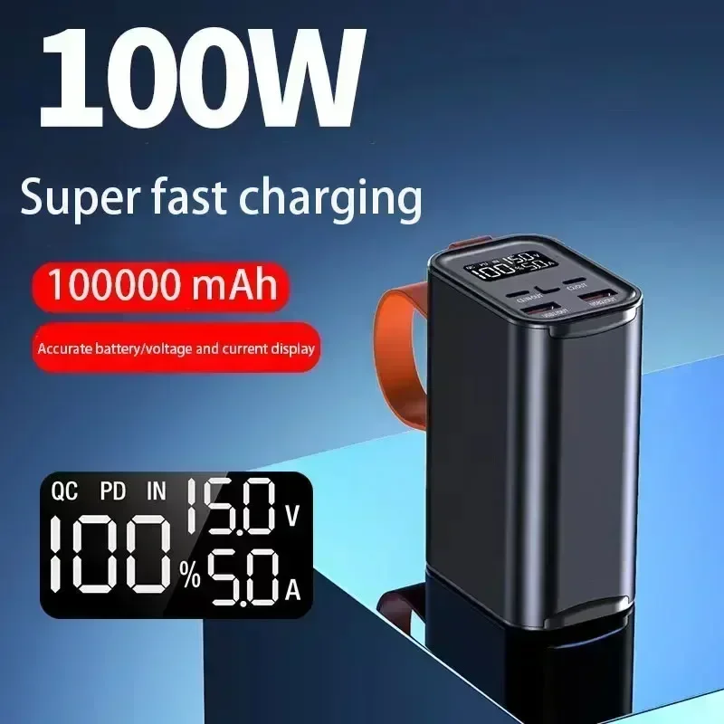 대용량 보조배터리 스테이션, USB C DC 고속 충전 외장 배터리, 휴대용 보조베터리, 아이폰 샤오미, 100000mAh, 100W PD