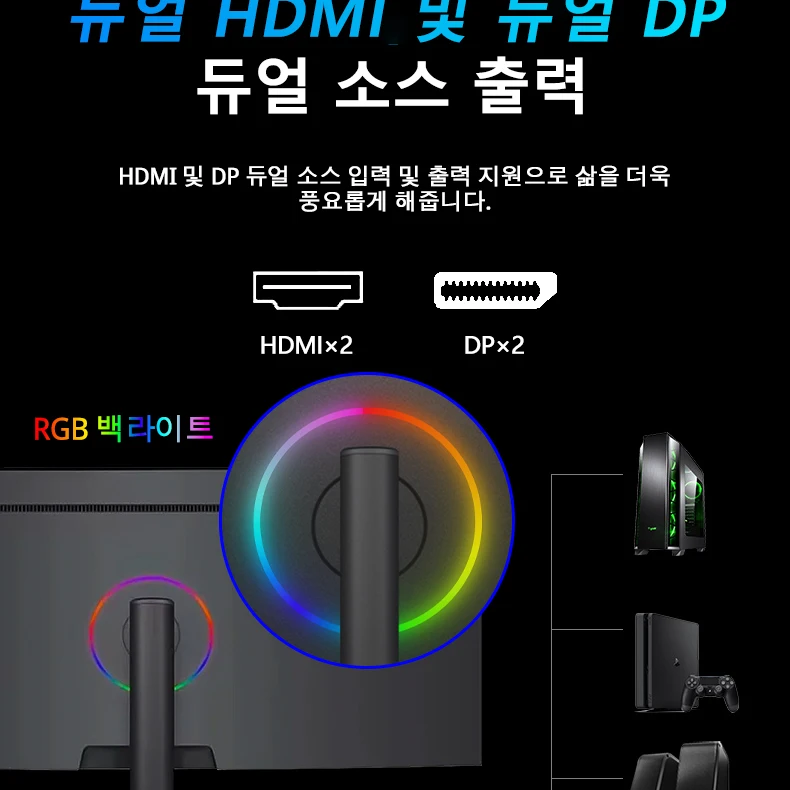 인터페이스: HDMI(2.0) × 2, DP(1.4) × 2, 헤드폰 잭, 전원 커넥터