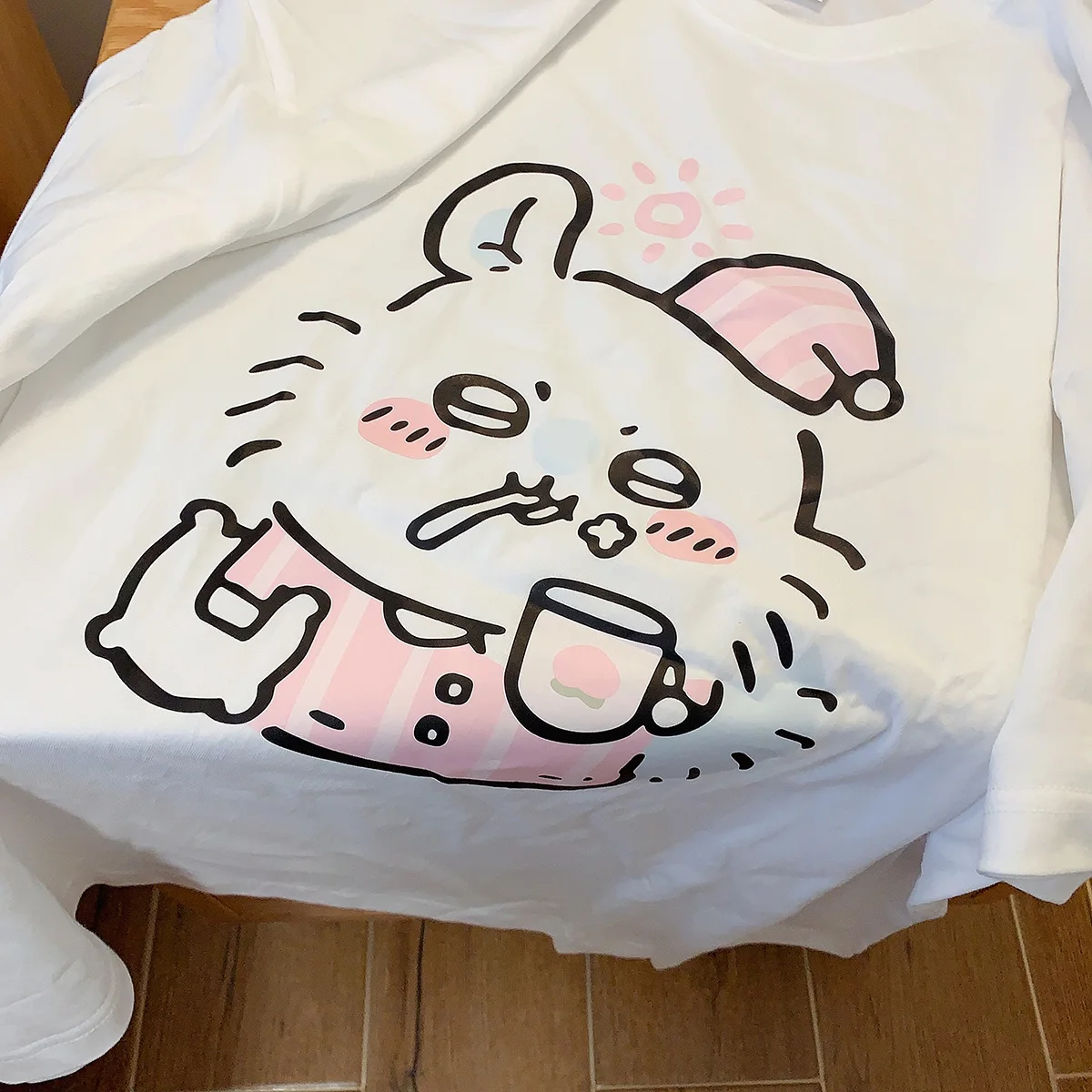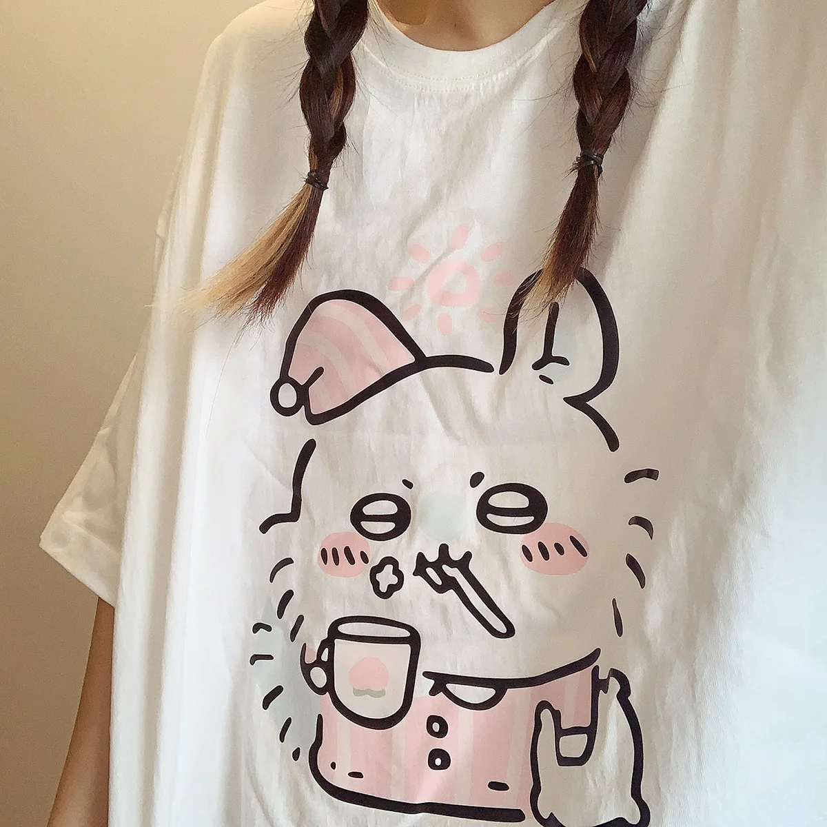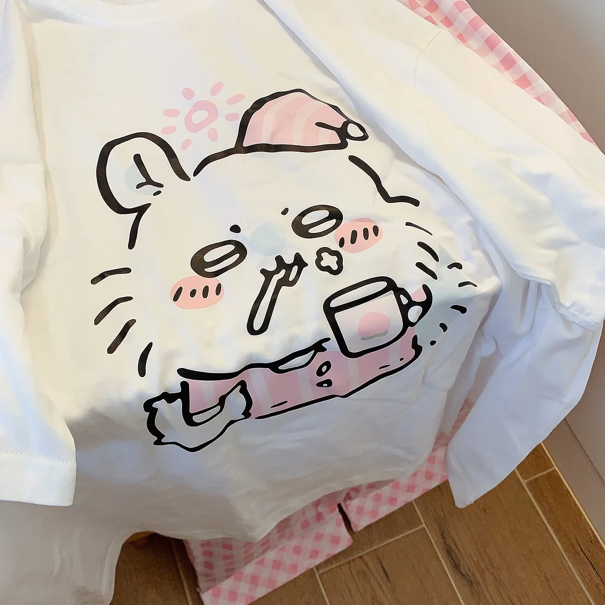 Chiikawa 여성 여름 코튼 잠옷 세트 라운드 넥 반팔 캐주얼 풀오버 투피스 세트 외부 착용 가능