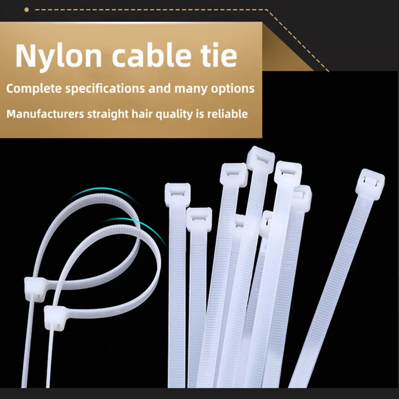 100 케이블 타이 고품질 플라스틱 케이블 타이 50 lb 인장 강도 자동 잠금 흑백 나일론 타이