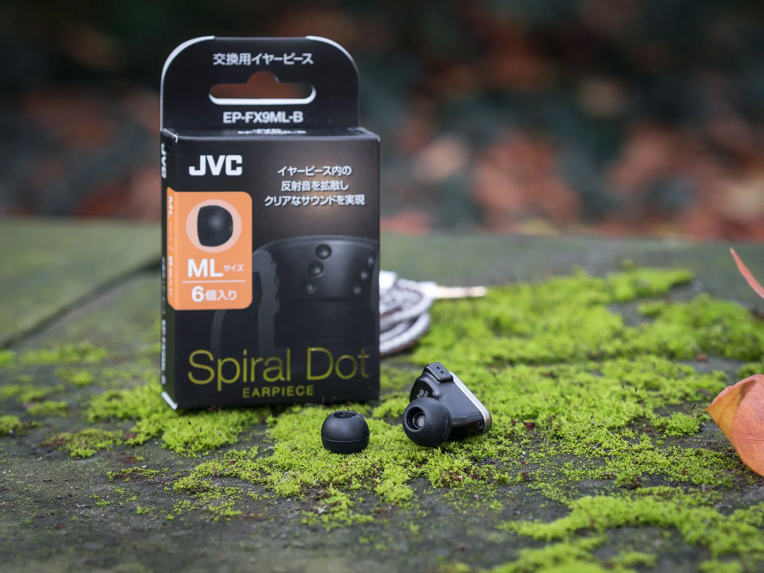 JVC EP-FX9 스파이럴 도트 이어팁 실리콘 이어버드, 스파이럴 딤플, 사운드 파편 감소, 선명한 사운드용 교체 이어버드 팁