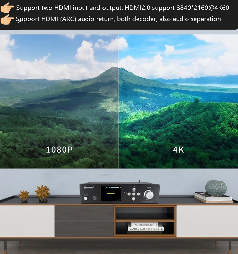 HDMI 오디오 광학 동축 DTS 돌비 AC3 파노라마 사운드 디코더 5.1 무손실 USB 플래시 드라이브 재생 블루투스 DSD