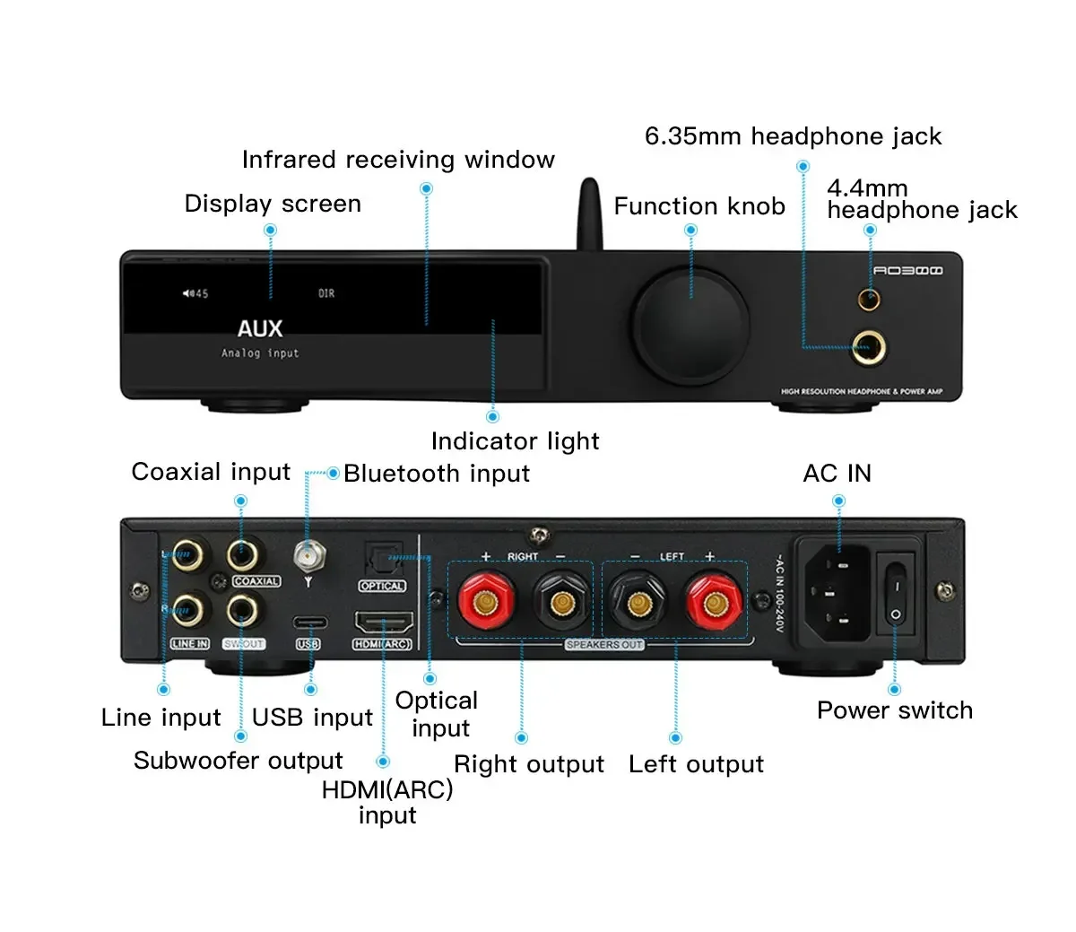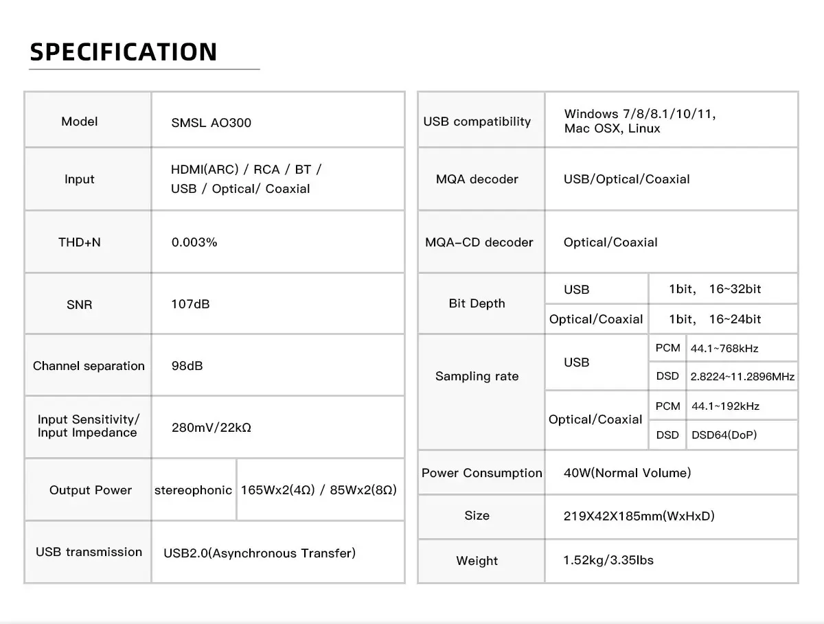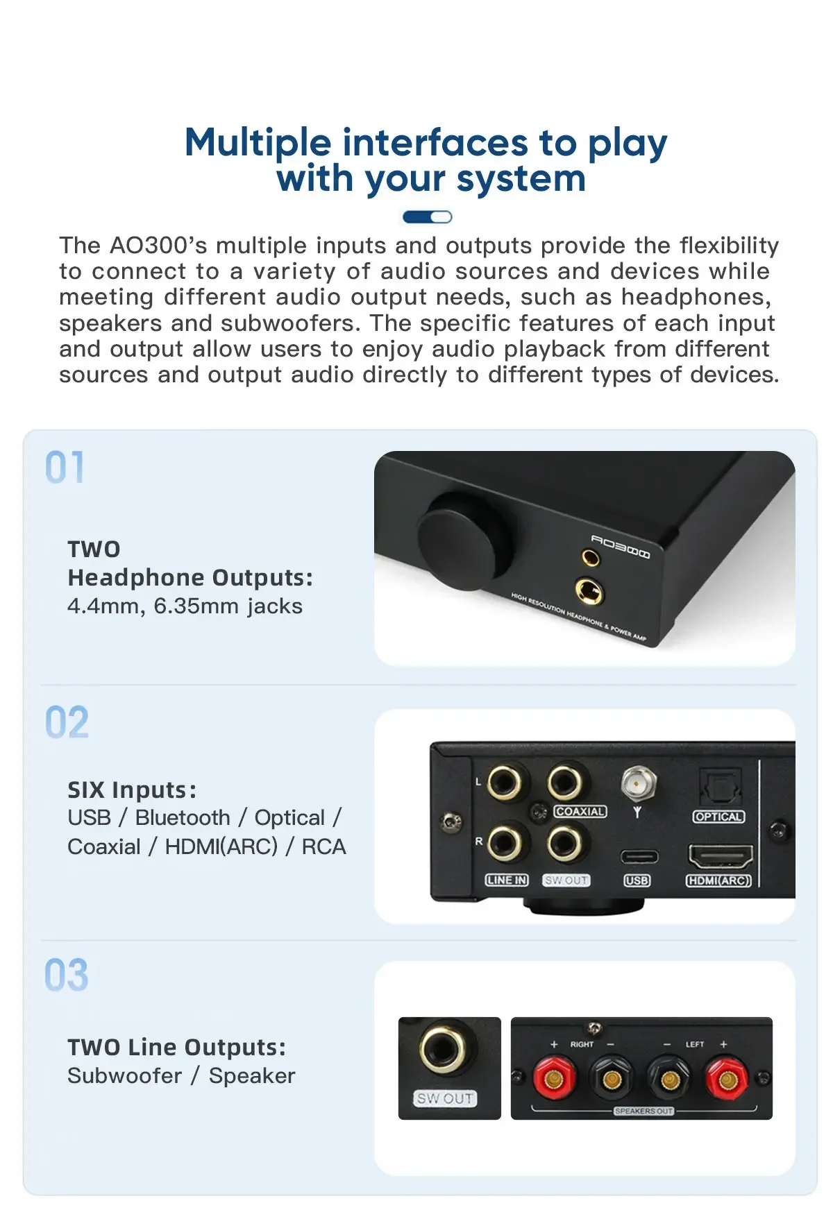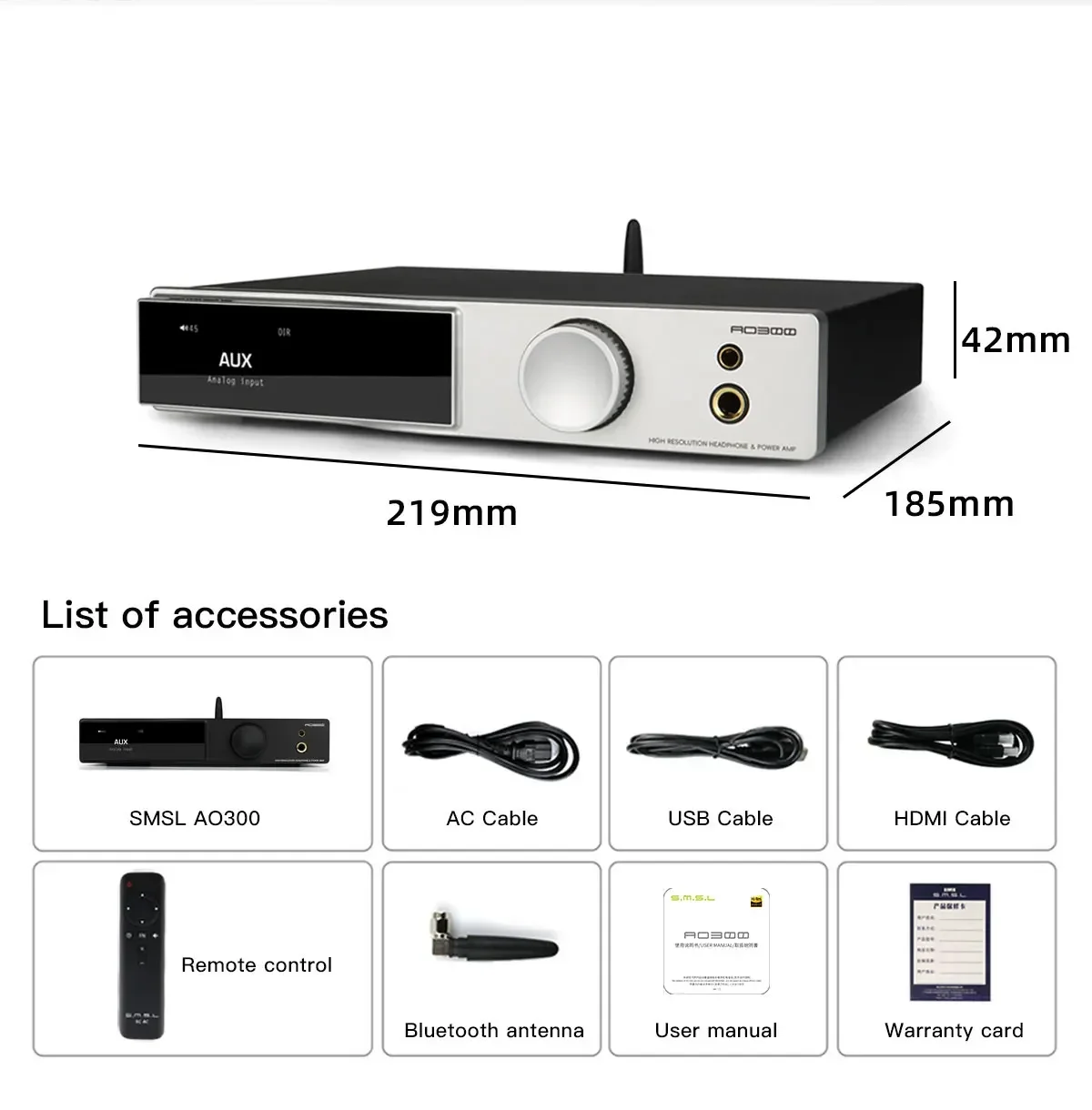 SMSL 전력 증폭기 및 헤드폰 AMP 및 디코더, MA5332MS MQA-CD 오디오 DAC CS43131 DSD256 XMOS XU-316, HIFI 블루투스 AO300