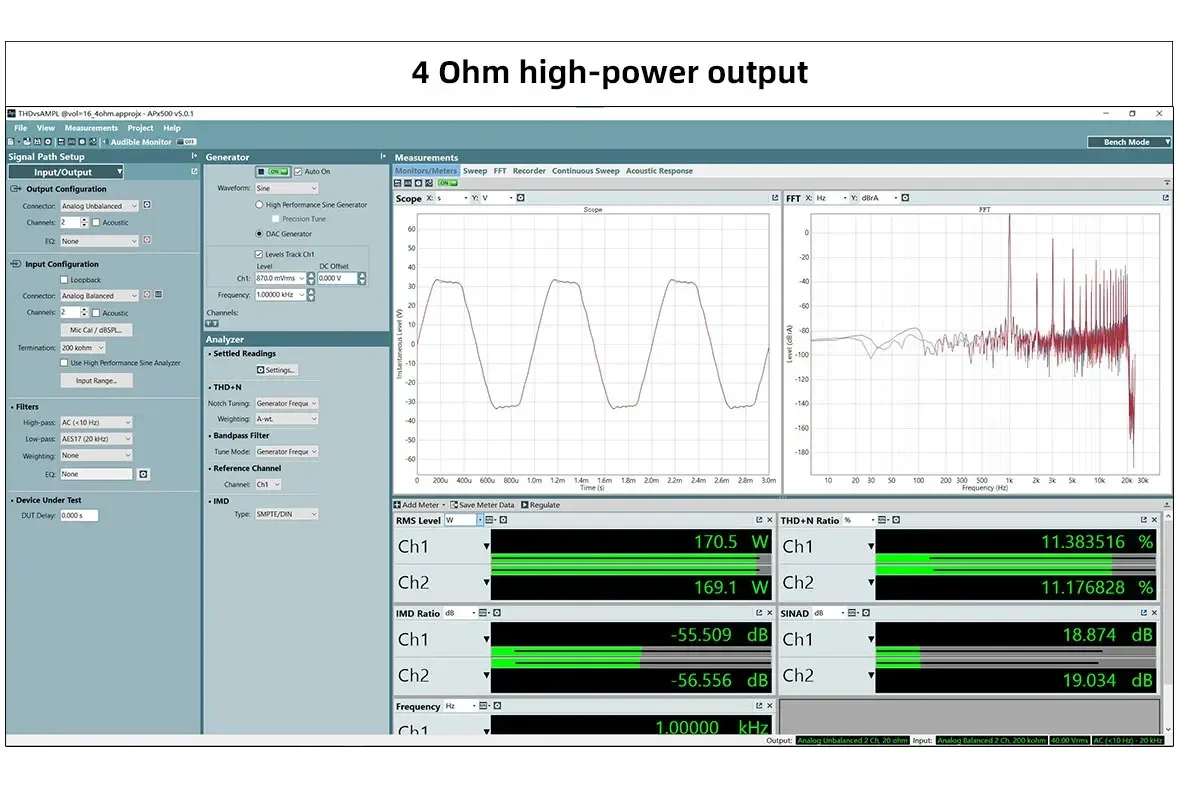 출력 전력 입체: 165Wx2(4Ω) / 85Wx2(8Ω)