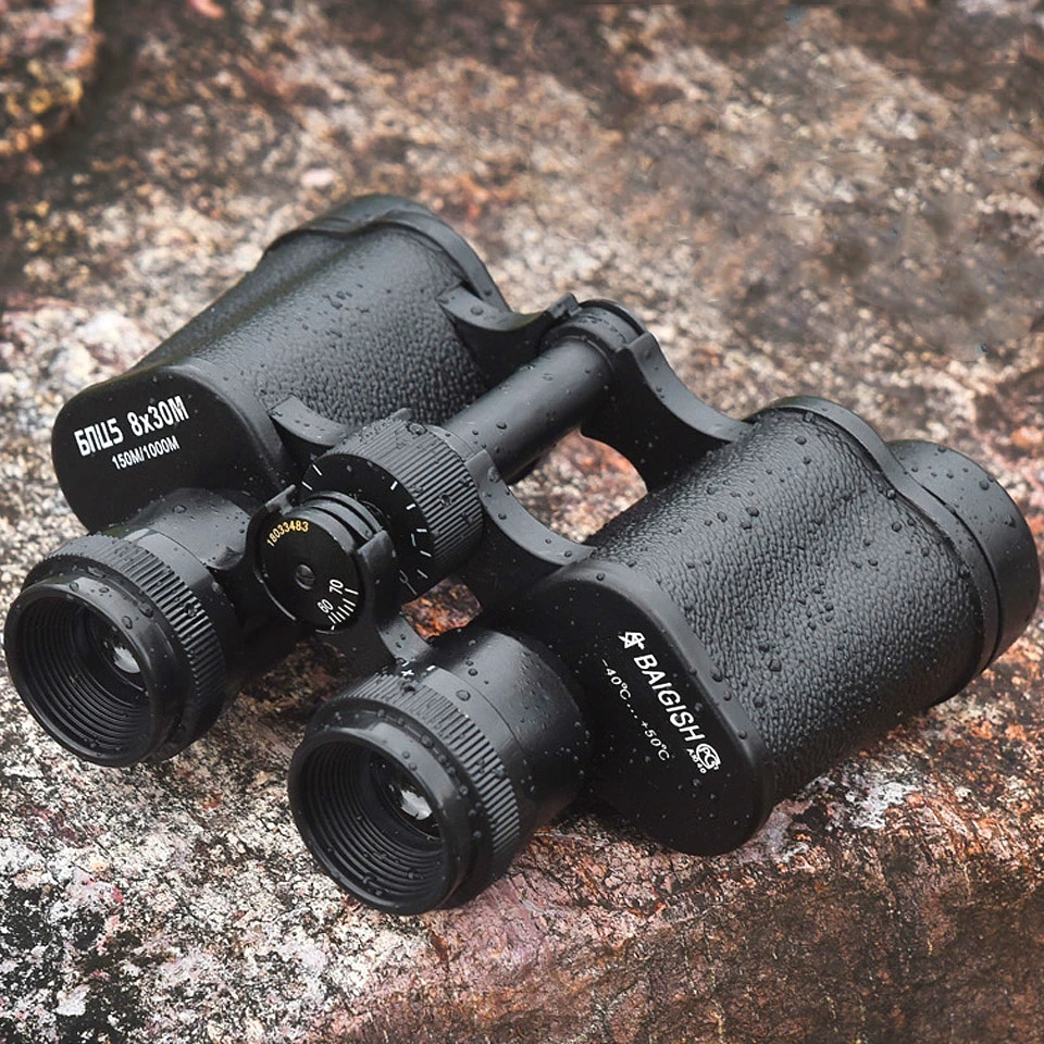 Baigish 8x30 러시아 쌍안경 전체 금속 구조 안경 전문 군사 방수 망원경 가죽 가방 사냥