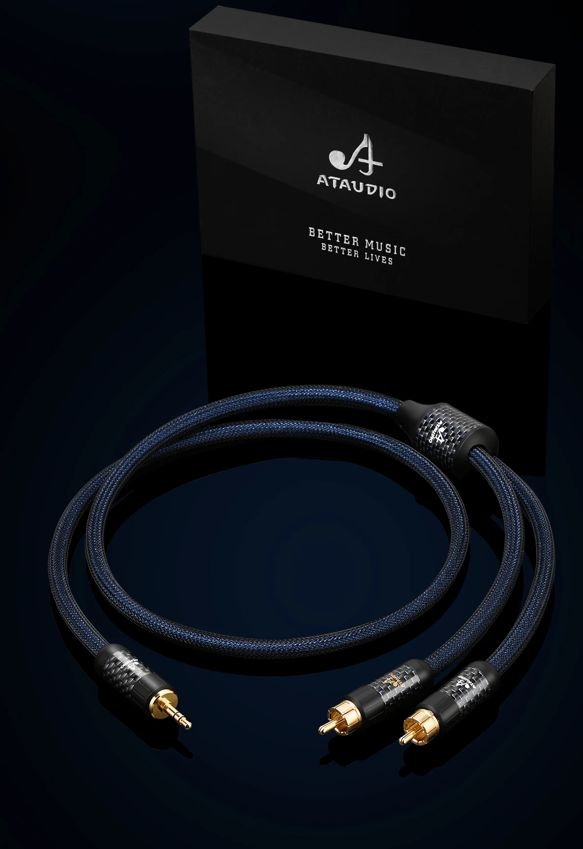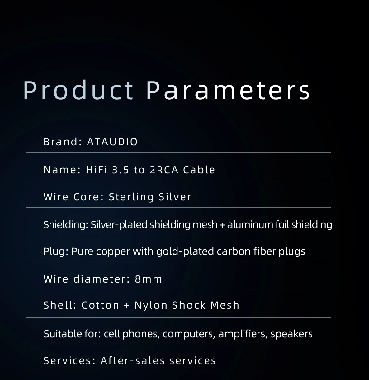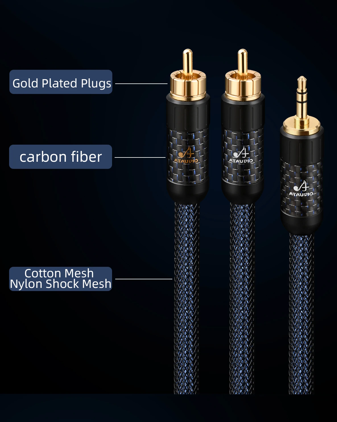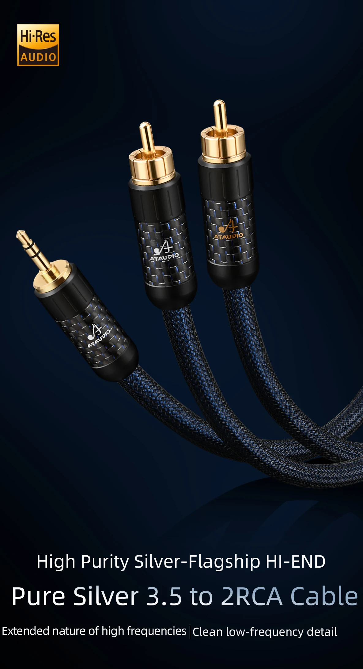 ATAUDIO 순수 실버 HiFi 오디오 케이블, 전화 CD 금도금 스테레오 3.5mm 잭-2RCA 수 HiFi 케이블, 3.5mm-2RCA