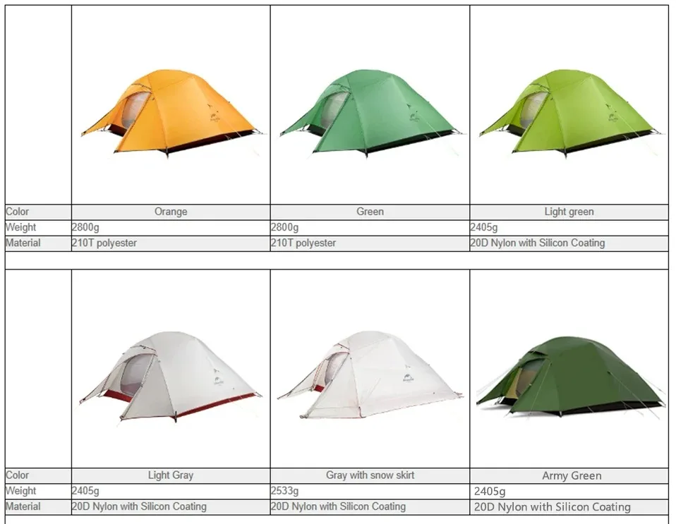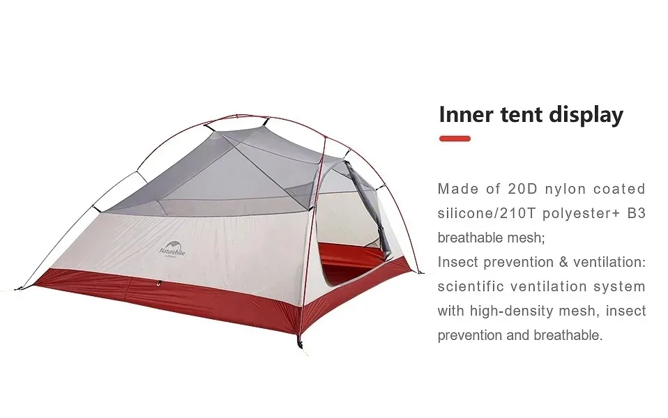 네이처하이크 클라우드 업 3 캠핑 텐트, 방수 넓은 공간 해변 쉘터 텐트, 초경량 나일론 하이킹 여행 배낭 텐트